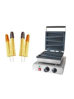 Вафли с начинкой 6 шт. размером 40х145 мм.  Напряжение - 220 В.  Мощность - 1,55 кВт. . Габариты (ДхШхВ) - 390х340х245 мм. Термостат от 0 до +300 С. Таймер - 5 мин. Материал корпуса - нержав..