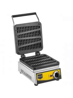 Кол-во постов - 1. Вафли размером 100х185 мм. Напряжение - 220 В.  Мощность - 1,2 кВт. . Габариты (ДхШхВ) - 250х420х240 мм. Вафельница с одной парой рабочих поверхностей на две вафли. Форма вафел..