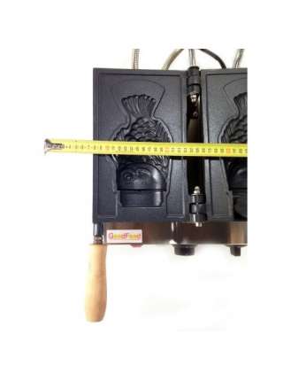 Кол-во постов - 1. Размер вафли 145х100 мм. Напряжение - 220 В. Мощность - 1,5 кВт. Габариты (ДхШхВ) - 400х500х275 мм. 3 объемные вафли 145х100 мм. в форме пустотелой рыбки. Корпус изготовлен из нержа..