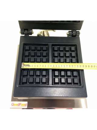 2 вафли 170х105 мм. 4х6 клеток. h зуба 11 мм.   Напряжение - 220 В.  Мощность - 2 кВт. Габариты (ДхШхВ) - 310х430х230 мм. Однопостовая, квадратная. 2 объемные вафли 170х105 мм. прямоуго..