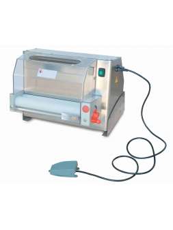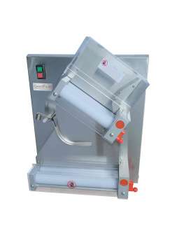 Две пары валков длинной 45 cм.. Напряжение - 220 В. Мощность - 0,37 кВт.. Габариты (ДхШхВ) - 570x550x770 мм. Корпус устройства выполнен из нержавеющей стали. Вес заготовок 210-700 гр., пицца Ø 26-43 с..
