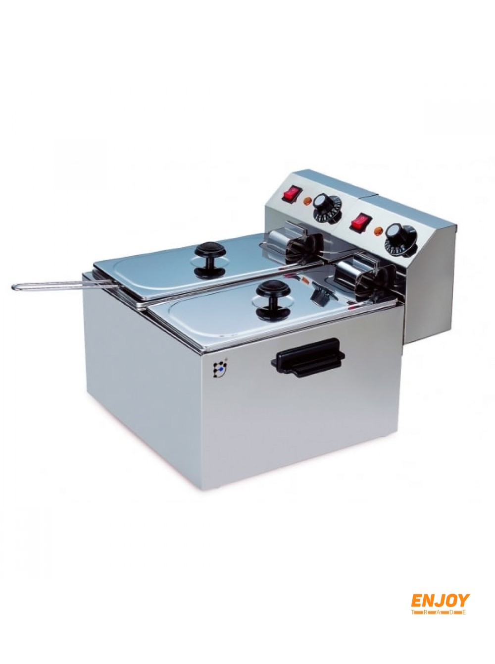 Фритюрница оборудована двумя ваннами с крышками, по 4 литров каждая, которые имеют раздельное включение.