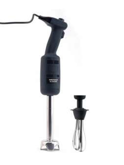 V до 10 л. Скорость от 4 000 до 20 000 об/мин.  Напряжение - 220 В.  Мощность - 0,22 кВт. Габариты (ДхШхВ) - 75х75х470 мм. Две насадки - нож - смеситель из нержавеющей стали и венчик.Вес - ..