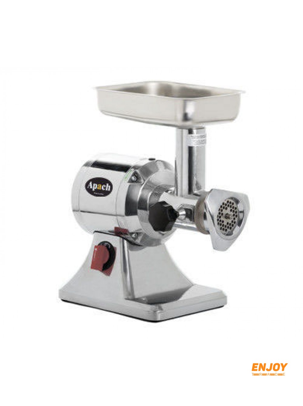 Мясорубка Apach оснащена вентилируемым асинхронным двигателем с защитой от перегрузок. Лоток и горловина мясорубки выполнена из нержавеющей стали.