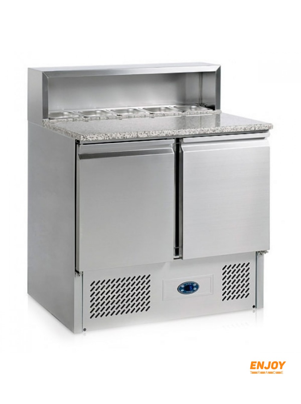 2 двери. 2 полки GN 1/1. Гранитная столешница. Внешний корпус и внутренняя обшивка - нержавеющая сталь.