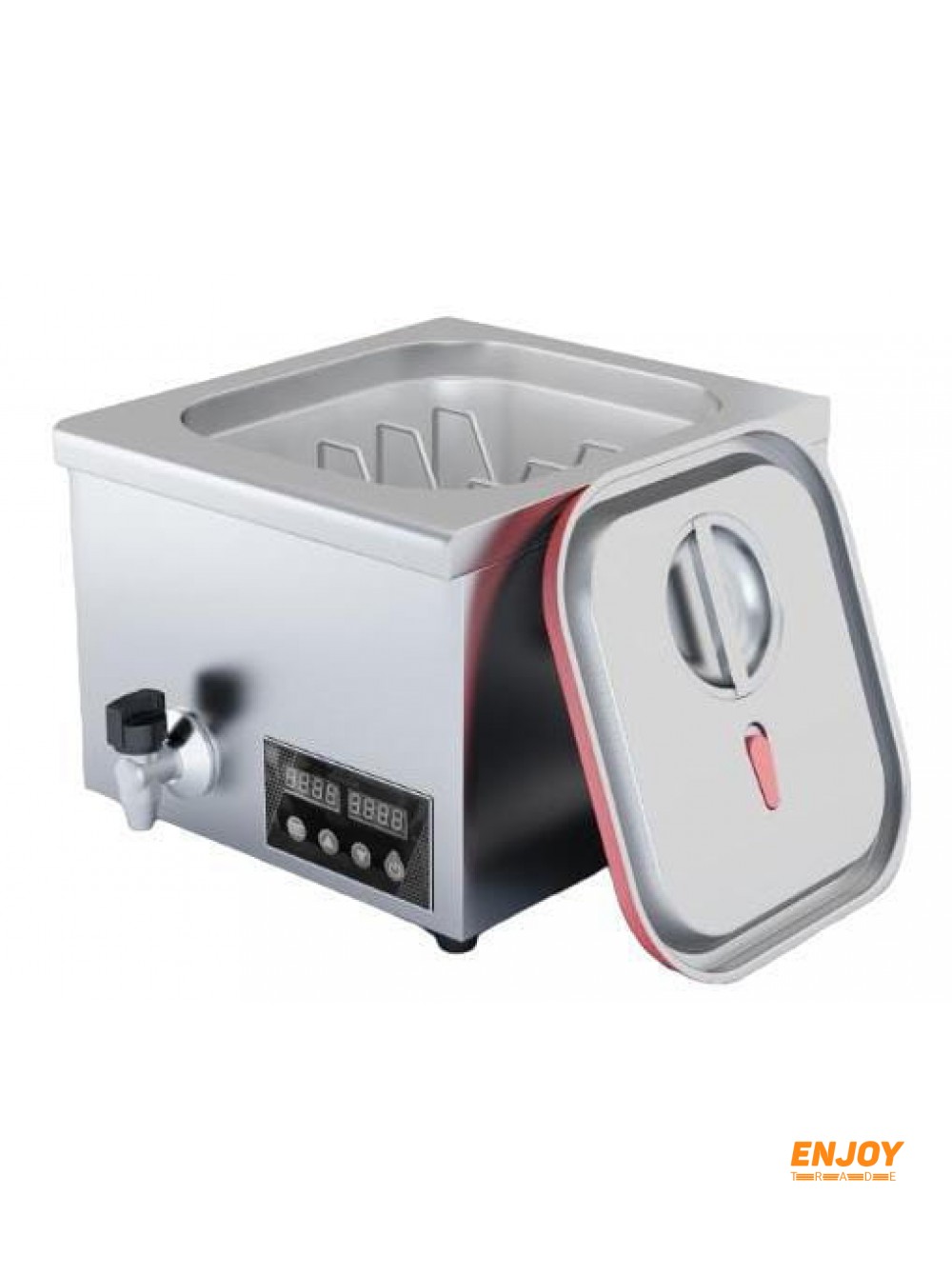 Мембранная панель управления. Таймер до 99 ч. Кран для слива. Температурный режим до +95 С. Материал корпуса и ванны - нержавеющая сталь AISI201.