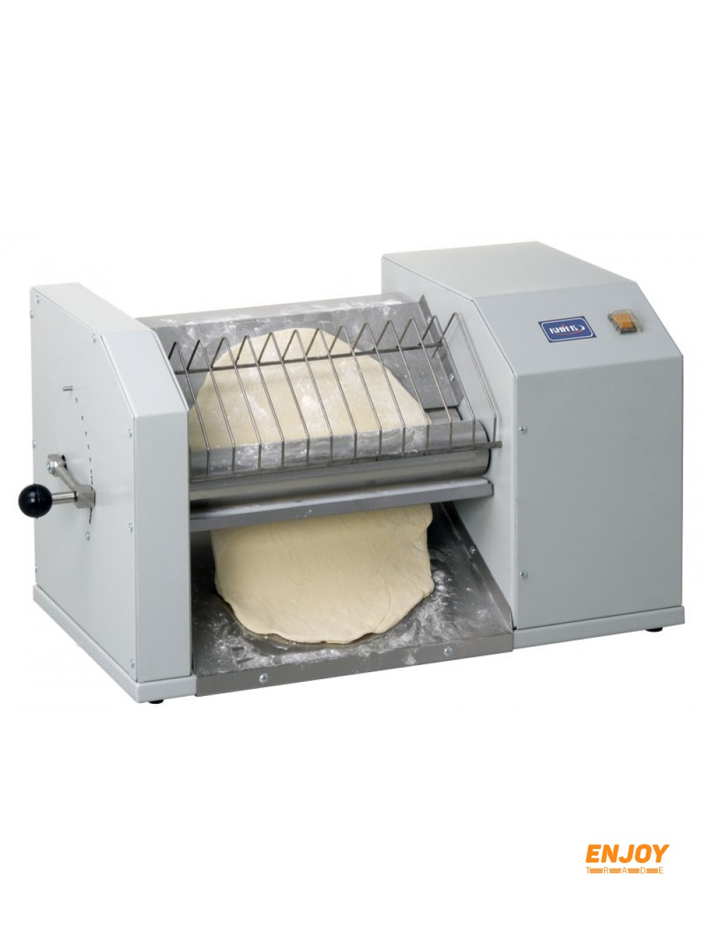 Конструкция изделия исключает травмирование рук в процессе работы. Зазор между валками позволяет раскатывать тестовую заготовку высотой до 24 мм.