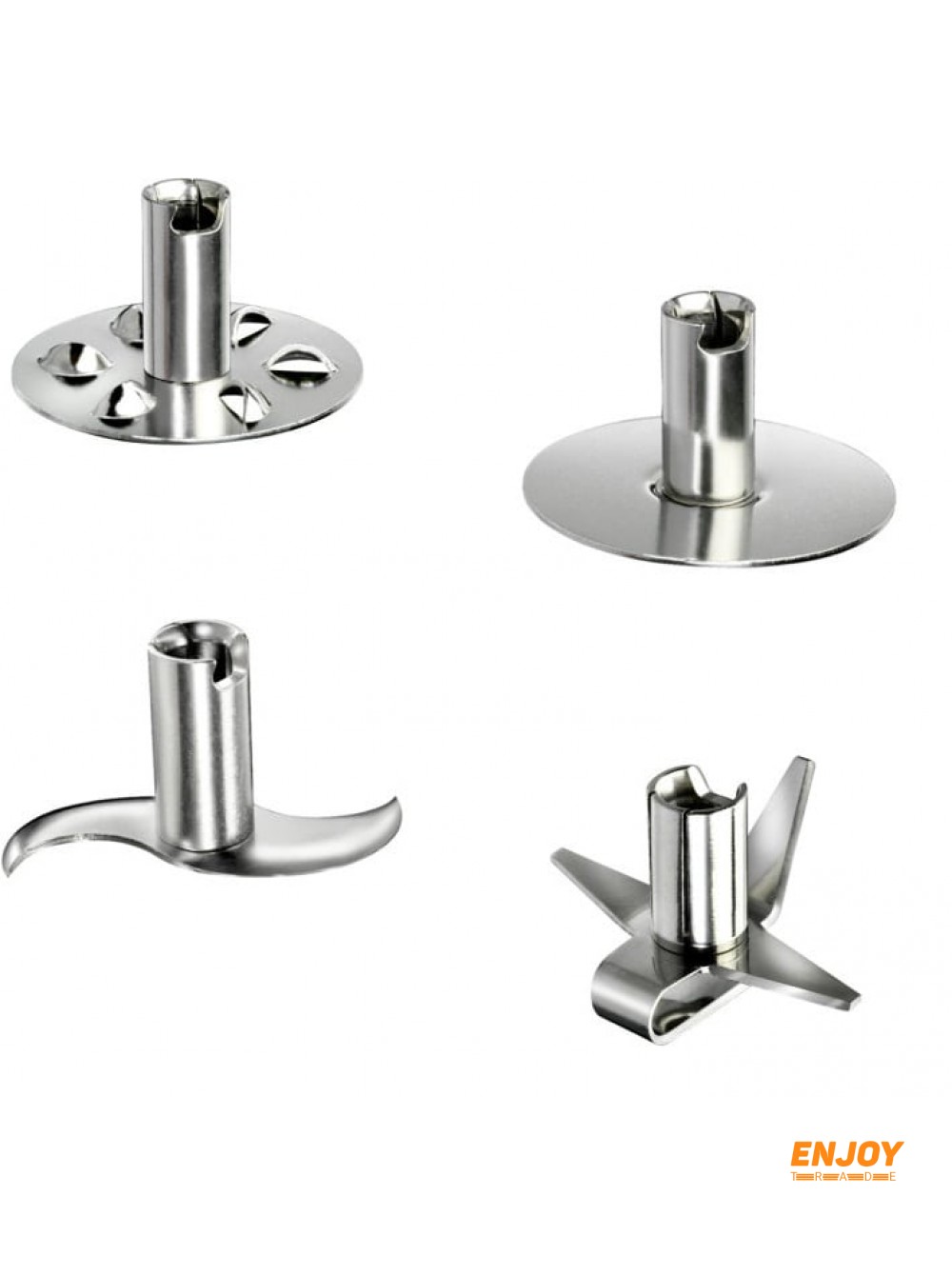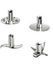 В комплекті - багатофункціональна насадка, насадка для перемішування, насадка для збивання, ніж для рубки м'яса і овочів, термокружка.