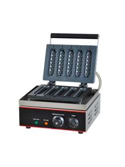 Габарити (ДхШхВ) - 420х250х260 мм. Напруга - 220 в Потужність - 1,6 кВт. Апарат для приготування сосисок у тісті (корн-доги) на 5 форм. Розмір форми однієї половини - 130х40х25 мм.Корн-доги забезпечен..