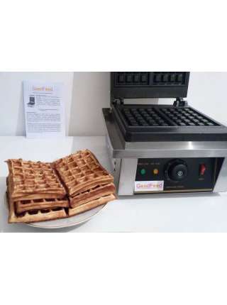 Кількість постів - 1. Розмір вафель 185х185 мм. Напруга - 220 В.  Потужність - 1,5 кВт. Габарити (ДхШхВ) - 340х370х240 мм. Бельгійські вафлі 4х6 квадратів. Термостат - від 0 до +300 С. Таймер - 1..