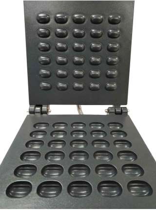30 шт. у формі горіха. t режим +50..+300 С   Габарити  (ДхШхВ) - 330х370х240  мм. . Напруга - 220 В. Потужність - 1,75 кВт. Вафельниця для випікання об'ємних кондитерських горішків..