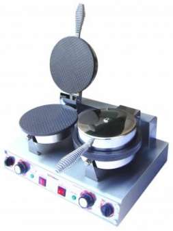 Кіл-ть постів - 2. Вафлі для конус. стаканчика  Напруга - 220 В.  Потужність - 3,2 кВт. . Габарити (ДхШхВ) - 550х440х230 мм. Розмір вафель - 250х250х4 мм. - 1 пост.Робочі поверхні виготовлен..