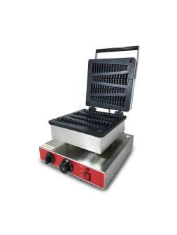 Вафлі з начинкою 6 шт. розміром 40х145 мм.   Напруга - 220 В.  Потужність - 1,55 кВт. . Габарити (ДхШхВ) - 390х340х245 мм. Термостат від 0 до +300 С. Таймер - 5 хв. Матеріал корпус..