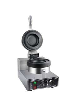 Кількість постів - 1. Вафлі круглі Ø 210 мм Напруга - 220 в Потужність - 1 кВт.. Габарити (ДхШхВ) - 260х440х260 мм. Для конусних стаканчиків. Термостат - від 0 до 300 С.. Таймер - 5 хв. Корпус виконан..