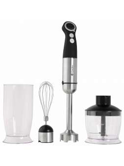 5 швидкостей, турбо-режим. Потужність-0,8 кВт Габарити (ДхШхВ) - 247х162х250 мм. Напруга - 220 в Потужність - 0,28 кВт. Матеріал корпусу - нержавіюча сталь/пластмаса. Комплектація: насадка - ніж з не..