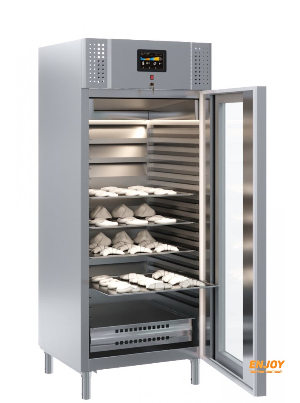 Шафа з регульованим контролем вологості від 65 до 95%. Розстоювання тіста з можливістю підготувати вироби до випічки до строго певного часу.Функція холодної расстойки. Функція уповільнення і зупинки ферментації. Матеріал корпусу всередині і зовні - нержавіюча сталь.