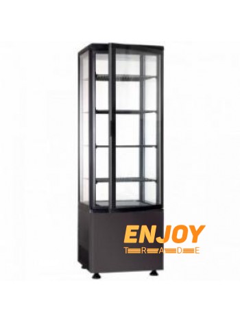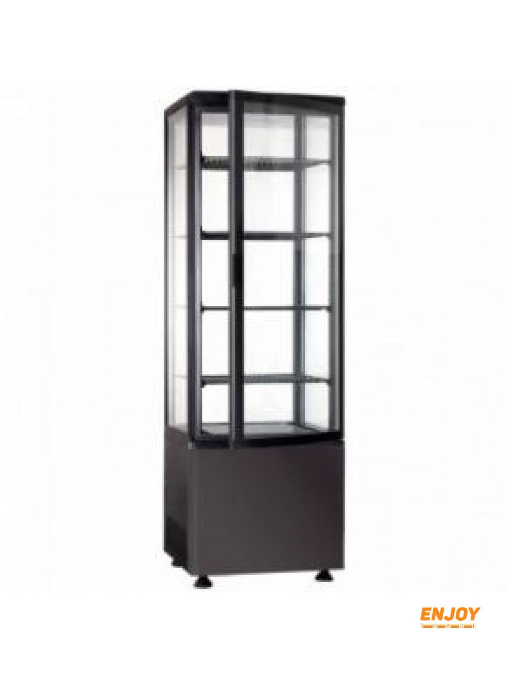 4 регульовані полки. Скло з 4-х сторін. Матеріал корпусу - чорний, пластик.