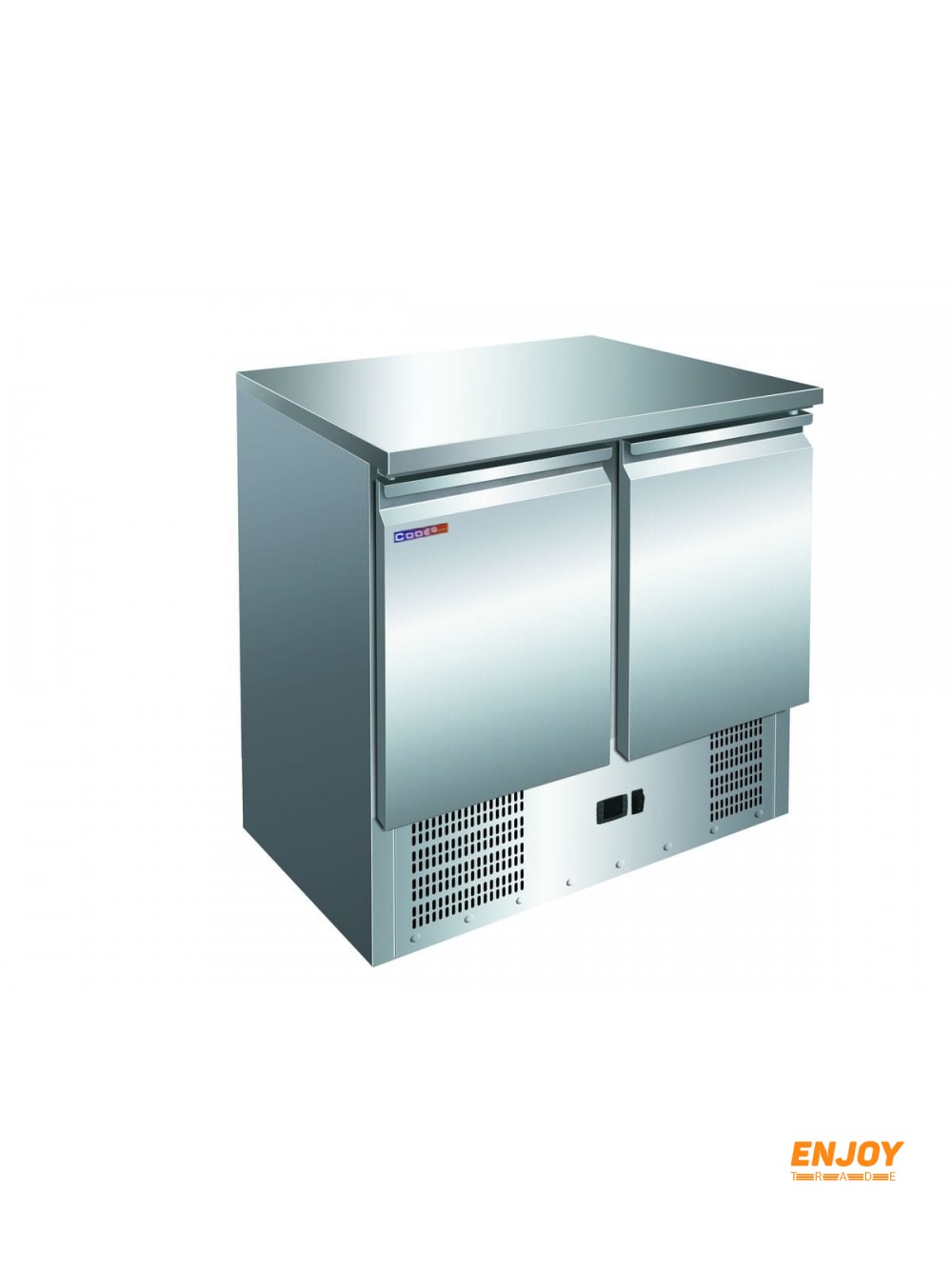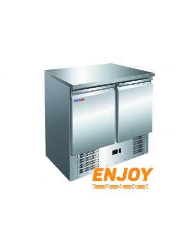 2-х дверний без борту. Статичне охолодження. 2 решітки GN 1/1. Матеріал корпусу та столешні - нержавіюча сталь. Фріон - R290.