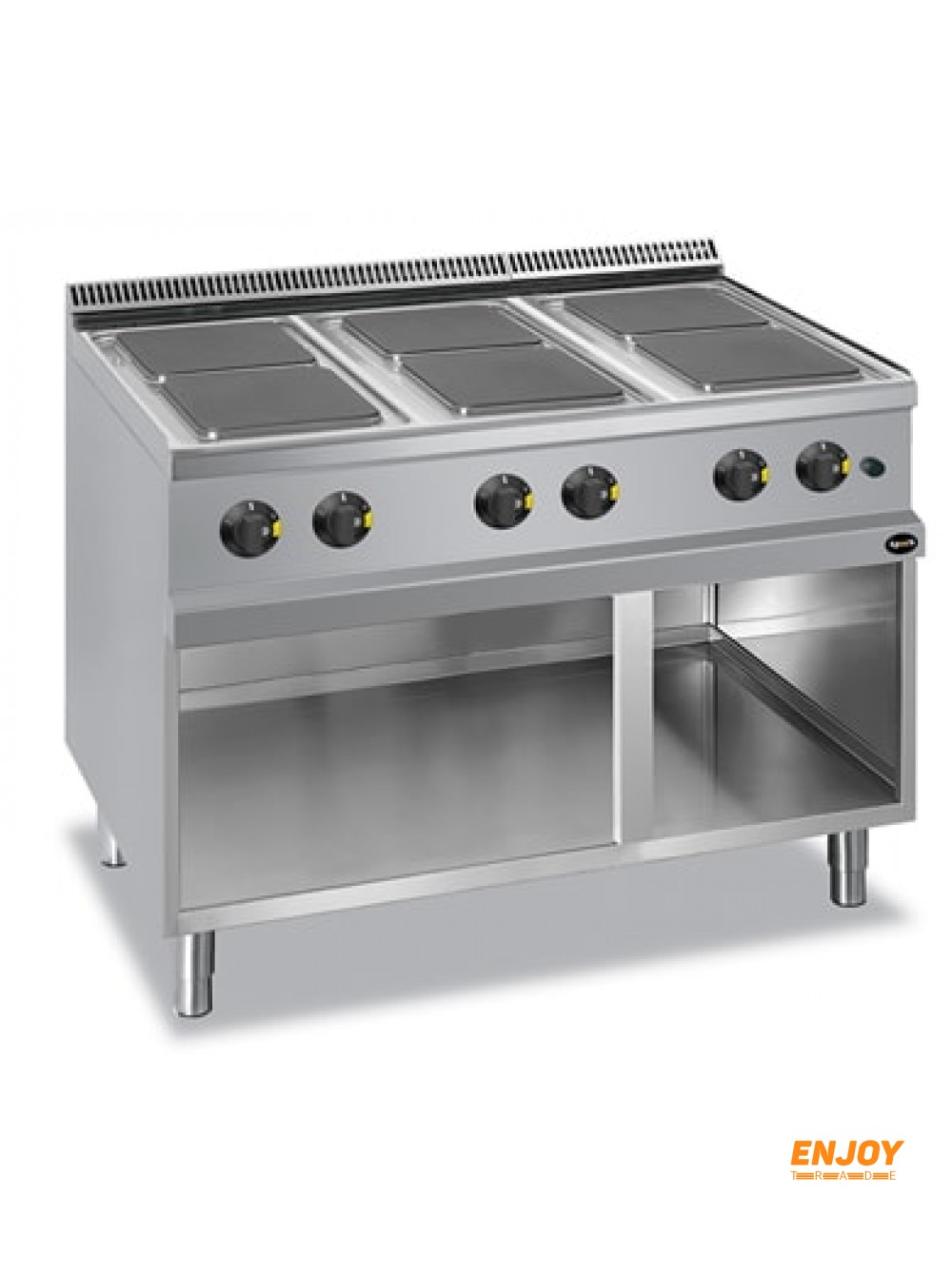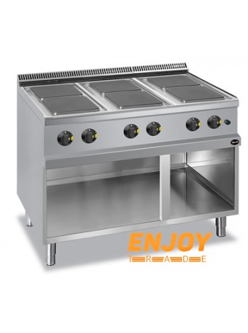 Електрична плита з шістьма високими квадратними конфорками Apach APRE-117P 700-ї серії на відкритому нейтральному стенді.