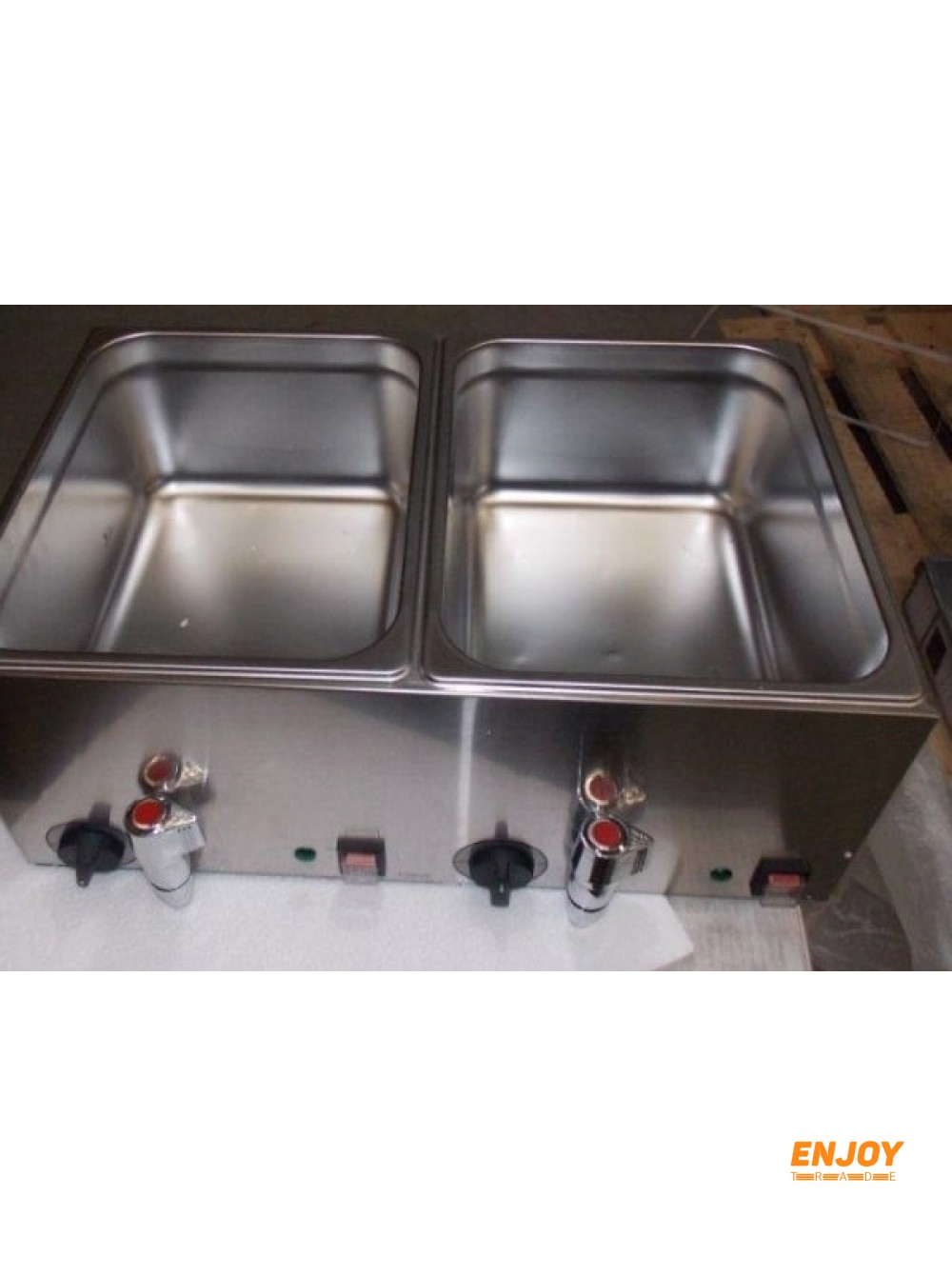 Підігрівач сосисок з 2 окремими ваннами і кранами зливу.