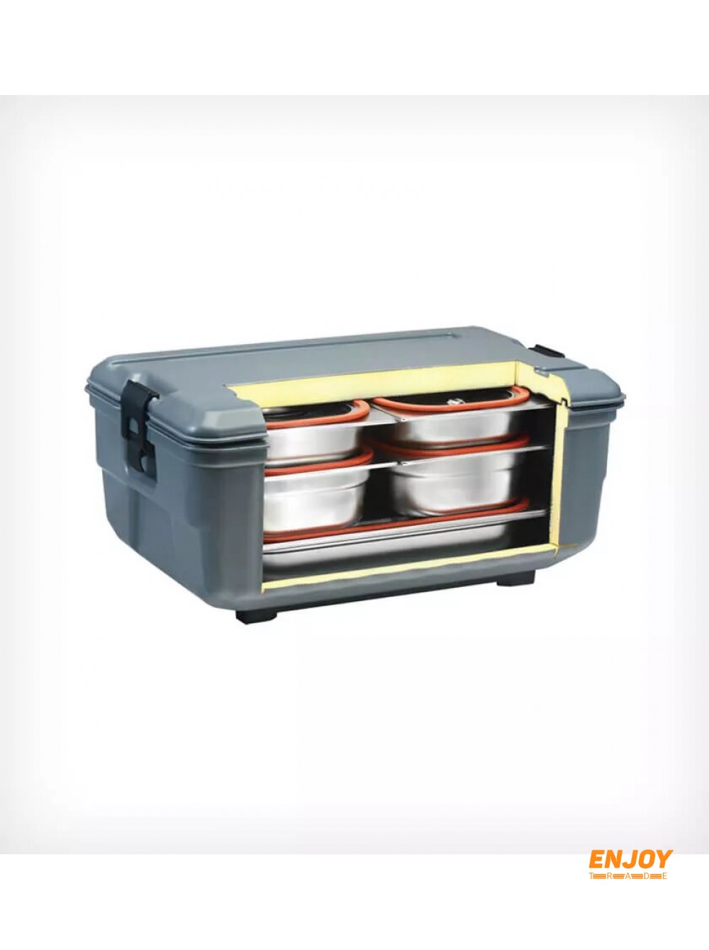 Обсяг - 48 л. Термоконтейнер зроблений з поліпропілену і спеціального ізоляційного матеріалу (FCKW free) завдяки цьому продукт зберігає